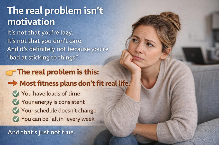 If workouts keep slipping because work, family, and tired days take over, this was built for you.